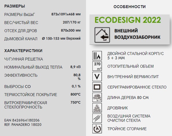 - Долговечность и безопасность: Panadero гарантирует долговечную и безопасную работу всех своих печей-каминов.