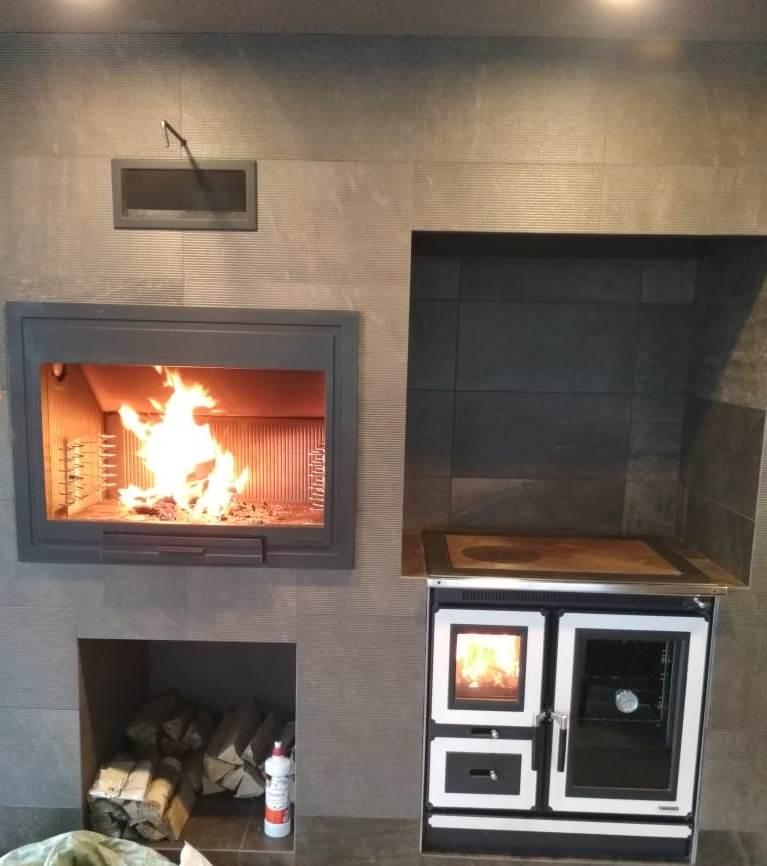 Готовый проект: Индивидуальная облицовка; гриль-топка "Hergom", арт. H04/80; отопительно-варочная печь "LaNordica", арт. Italy